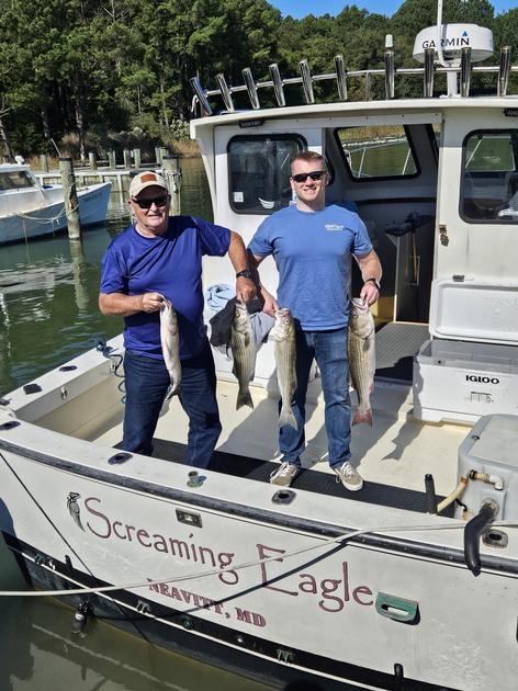 Carlton's crew crushed it this morning! Stripers were biting on multiple techniques. #NeavittMDfishing #ChesapeakeBaychartersNeavitt #ScreamingEagleCharters